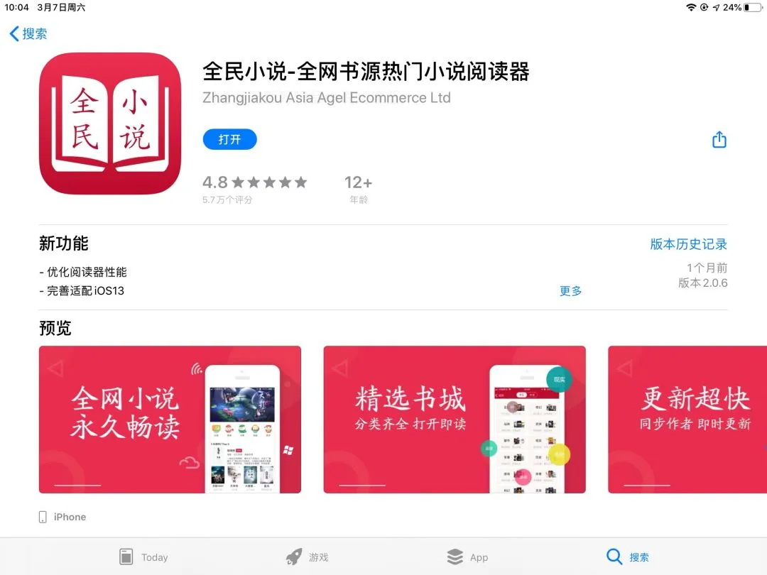 对了,iOS用户要看小说,可以去App Store搜一下:全民小说。虽然有点广告,但是,全免费,也还行。