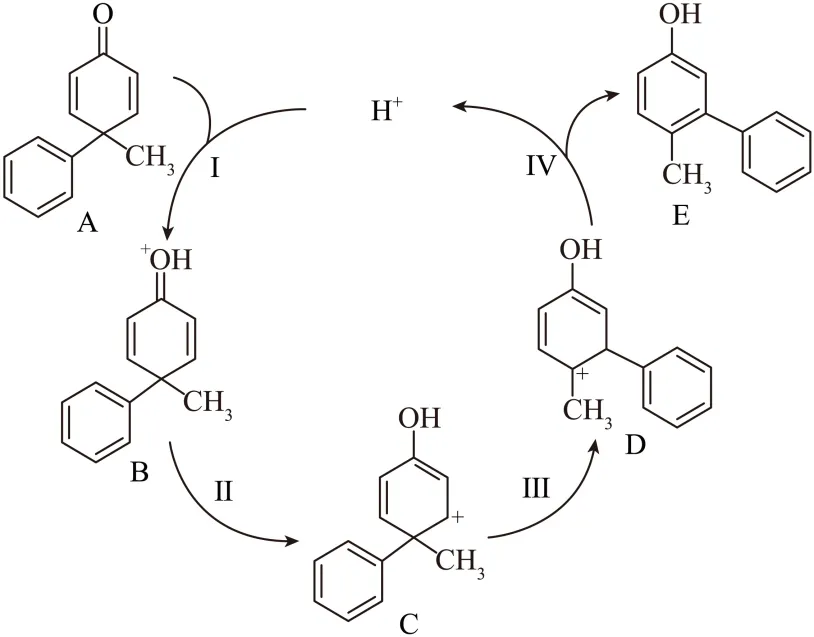 14. 化合物A在一定条件下可转变为酚E及少量副产物,该反应的主要途径如下: