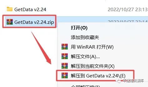 1.选中下载的压缩包,然后鼠标右键选择解压到”GetData V2.24″(没有解压选项点这里)