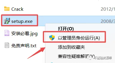 2.打开刚刚解压的文件夹,鼠标右键点击“Setup.exe”选择“以管理员身份运行”