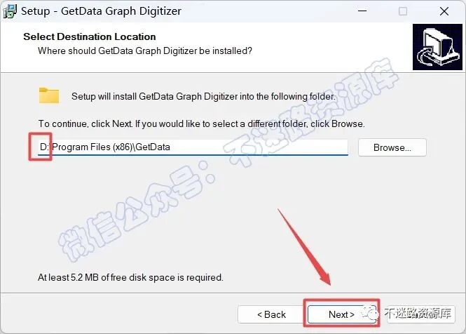 5.点击“Browse…“可以选择软件安装路径,建议和教程中的保持一致,本例安装到D盘(将路径地址中的首字符C改为D表示安装到D盘,或者可以在其它磁盘里创建一个新的文件夹,安装路径不要出现中文),点击“Next”