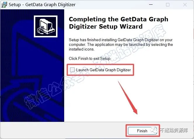 10.取消勾选“Launch GetData Graph Digitizer”,点击“Finish”