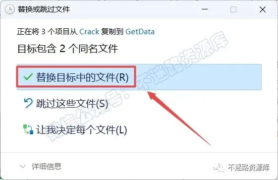14.点击“替换目标中的文件“
