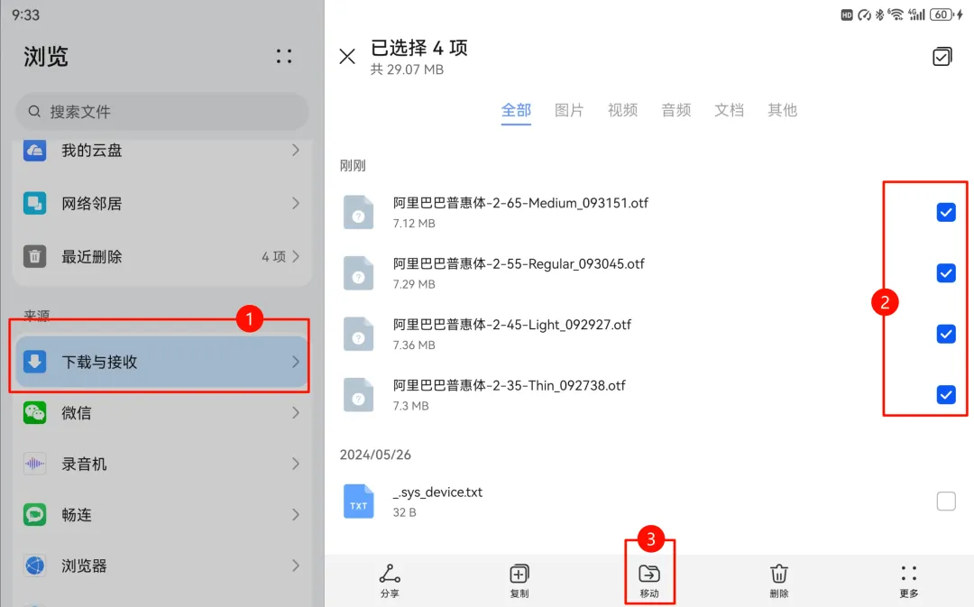最后,对比一下小米平板和华为平板的字体安装操作细节:
