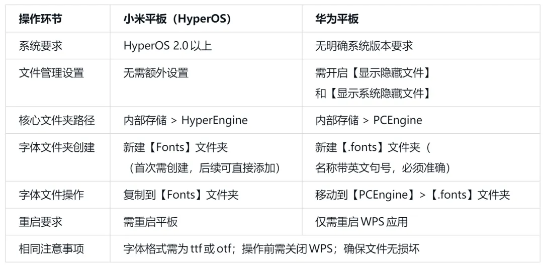 通过以上对比可以看出,不同品牌平板安装WPS字体的核心逻辑一致,但在具体操作细节上存在差异。建议在操作前仔细核对系统版本和文件夹路径,确保字体文件格式正确,以顺利完成安装。
