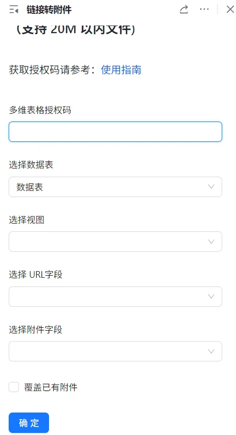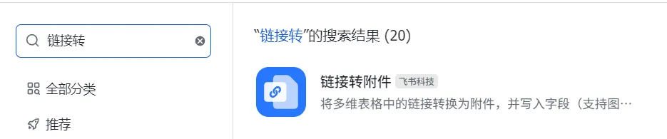 点击“自定义插件”—-“获取授权码”,点击“搜索插件市场”—-“链接转附件”。填写授权码,选择相应字段。