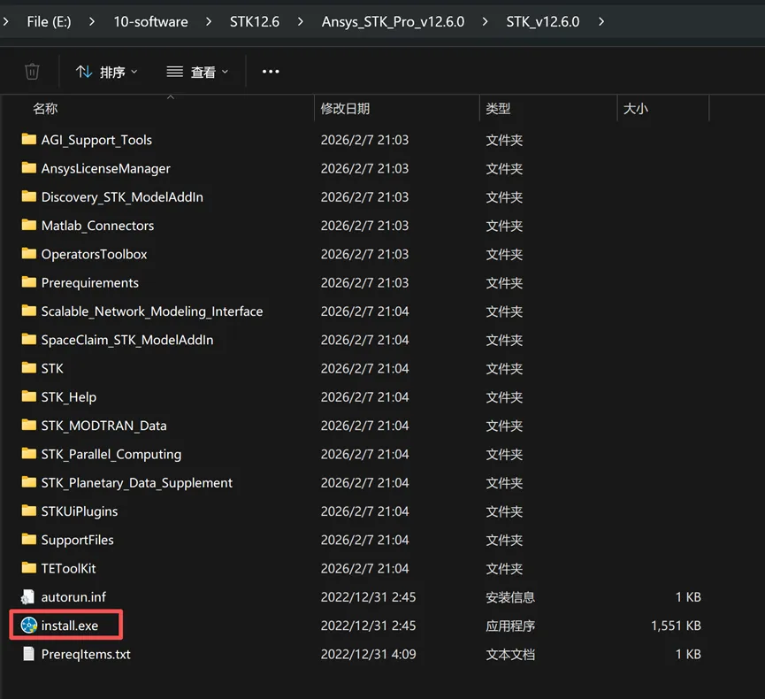 2.进入【STK_v12.6.0】文件夹,如下图,以管理员身份运行【install.exe】