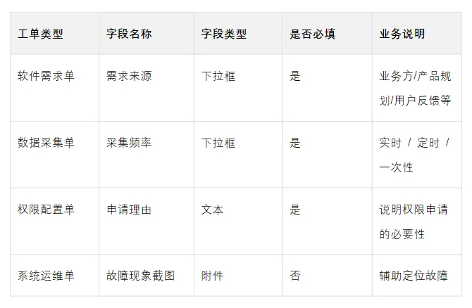 确定各类工单所需采集的信息字段,在满足核心业务功能的基础上,同时实现高复杂度和注重用户体验。