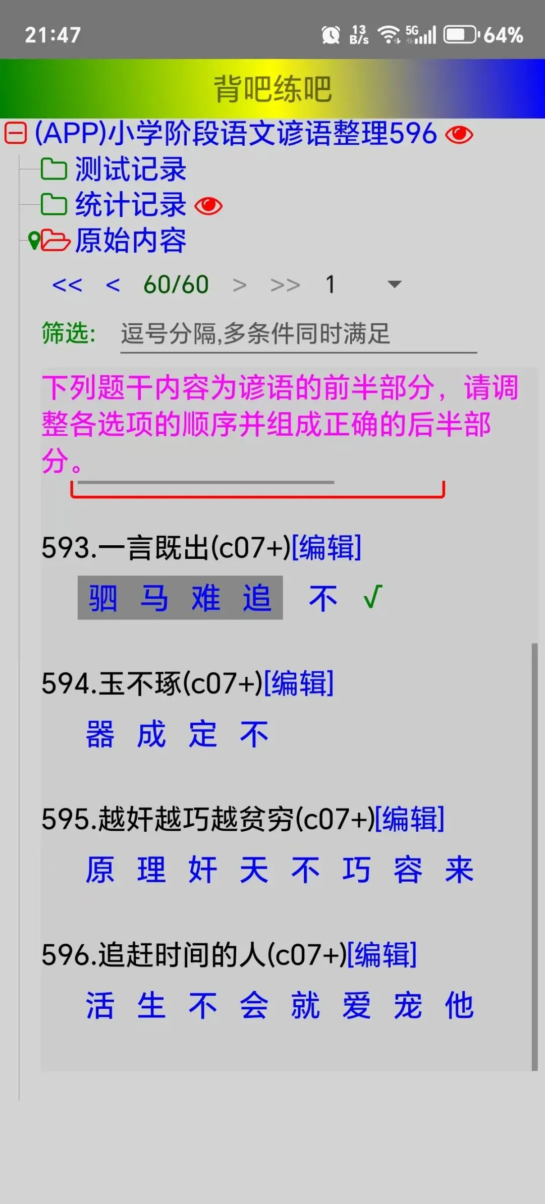 2、《(APP)小学阶段语文谚语整理596》,ID=1724b232250;