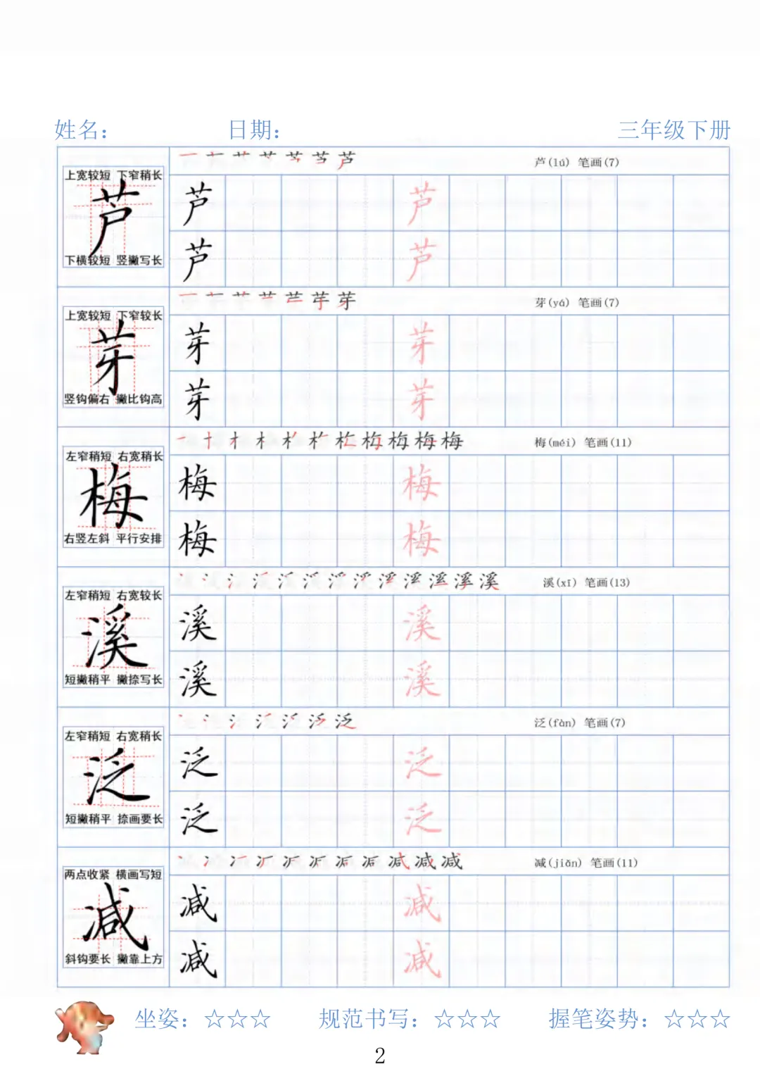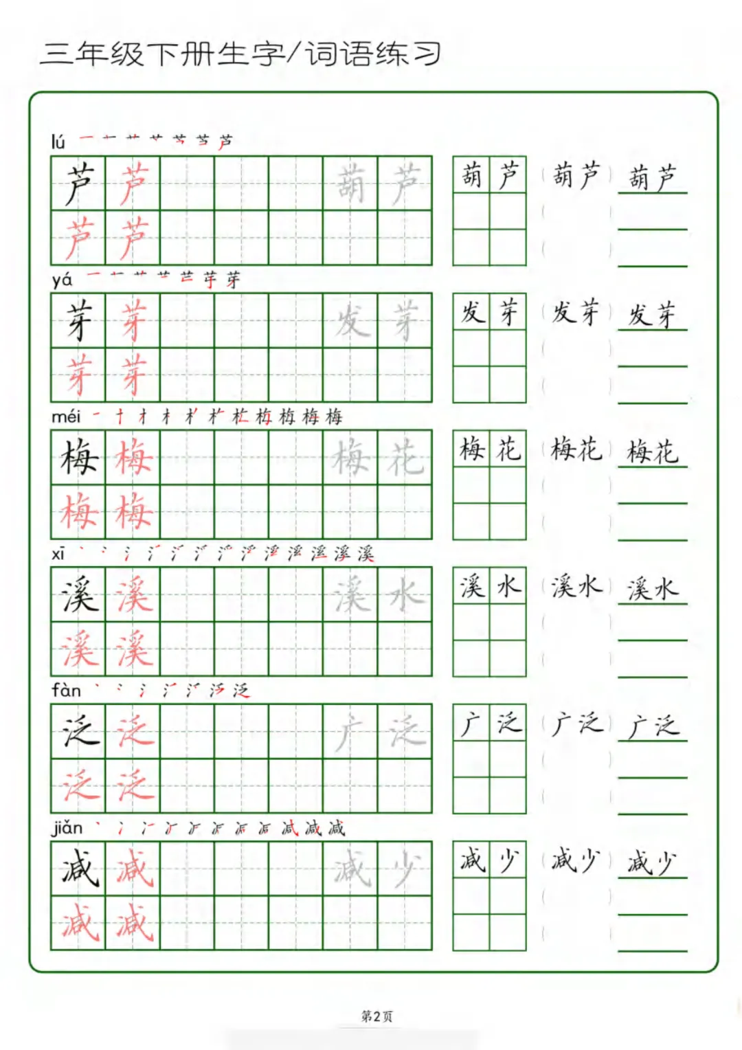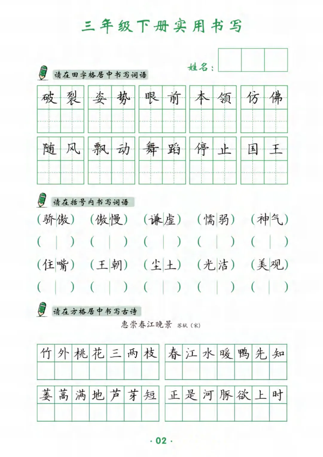 2026春新版《三下册语文生字表字帖》pdf版可打印