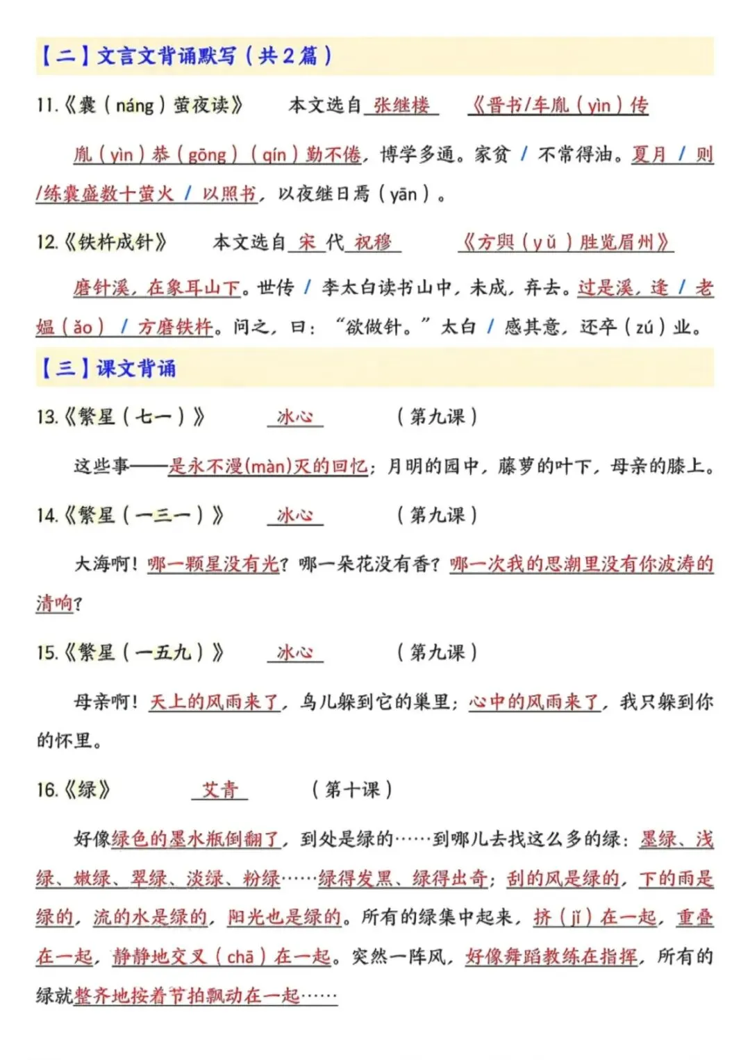 四年级(下)语文 预习必背知识点汇总