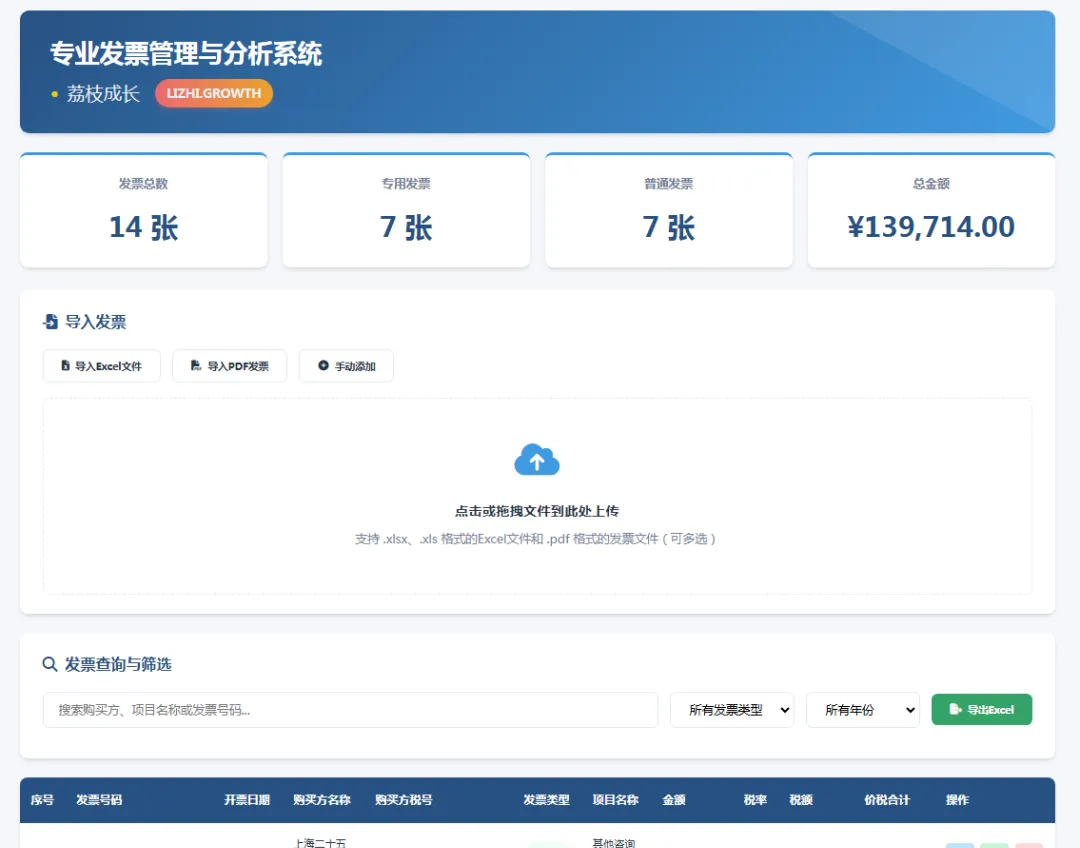 另我还做了一个专业发票管理与分析系统,承接wps多维表格定制模版。
