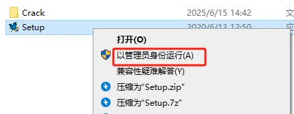 第三步:打开解压后的文件夹,找到【setup】,选中右击【以管理员身份运行】。