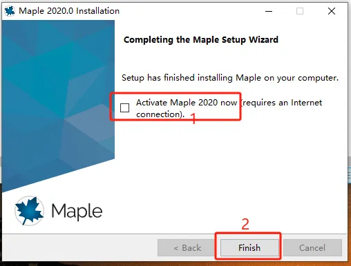 第十三步:取消勾选【Activate Maple 2020……】,然后点【Finish】。