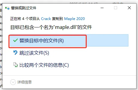 第十九步:选择【替换目标中的文件】。