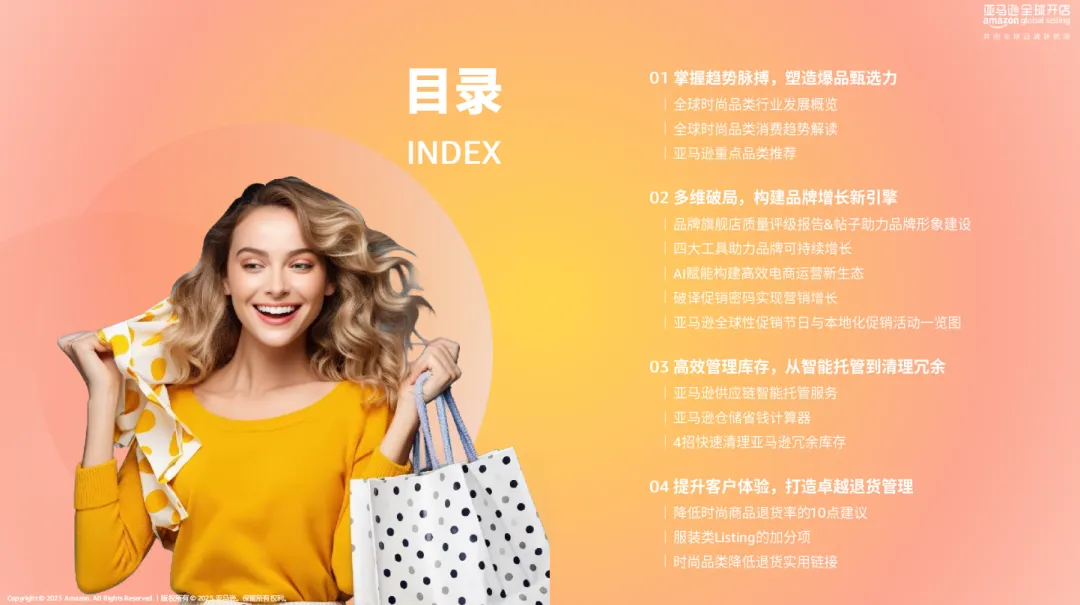 点击《2025 亚马逊消费品类.pdf》可获取完整版,抢占跨境时尚品类出海先机~