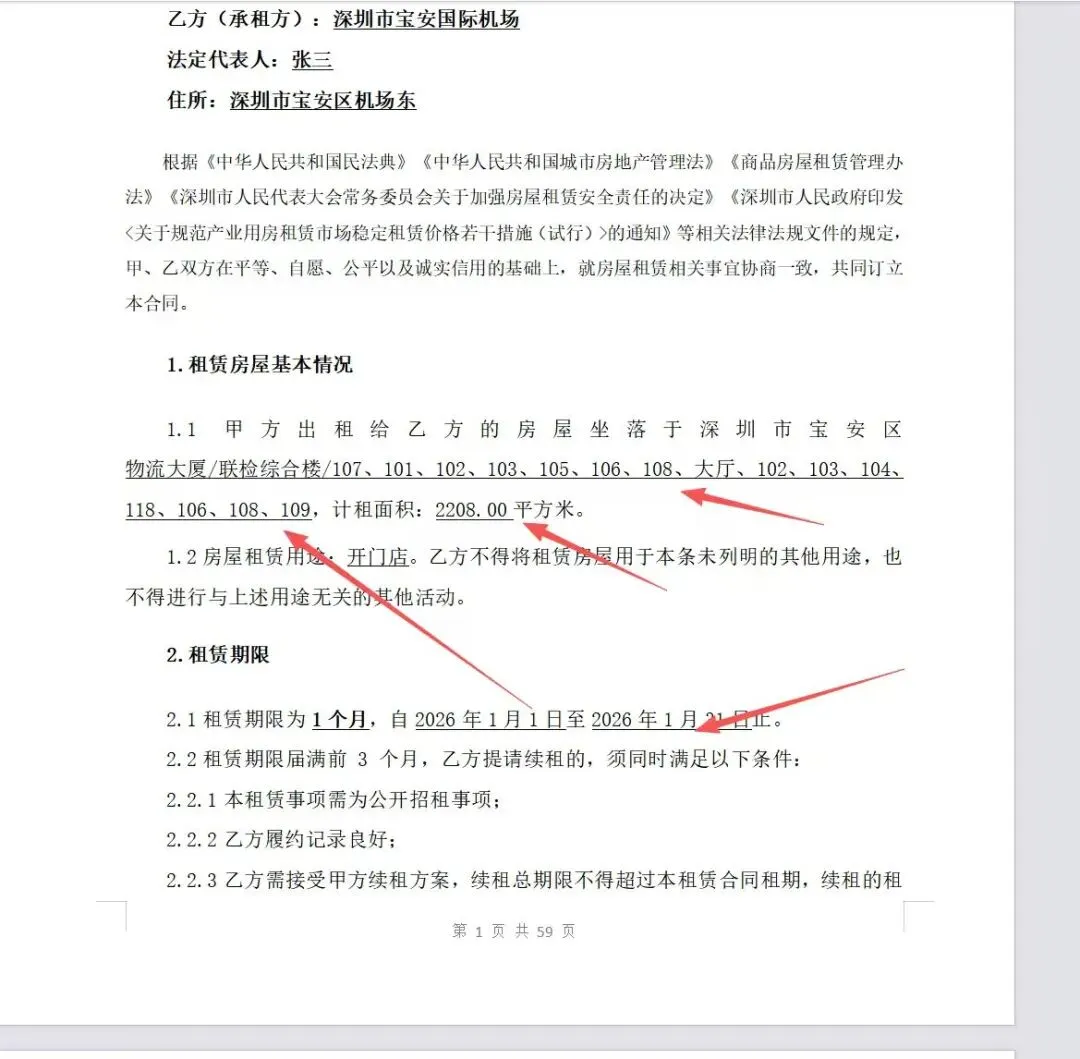 2. 预留动态内容位置(如姓名、⽇期、表格数据、列表等),暂时⽤占位⽂本标记(如【姓名】【表格数据】),⽅便后续替换为 FreeMarker 语法。