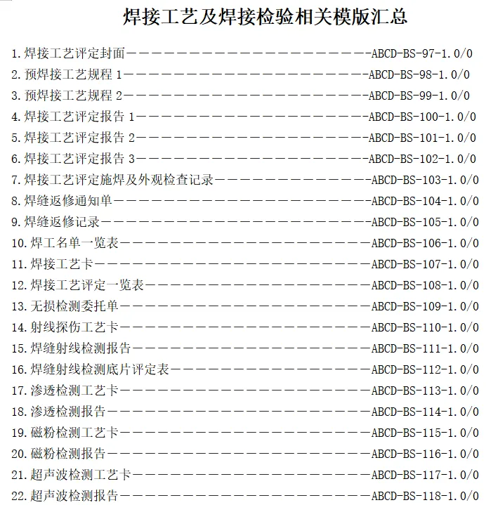 有承压设备的,有通用机械设备的。还有各类焊接返修和无损检测相关的模板。