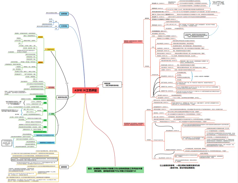 有关于常见焊接原因分析及解决方案的文件,有关于熔化焊国际焊评标准的汇总表。也有关于ASME第9卷焊评的思维导图。还有焊接基础知识的问答汇总。