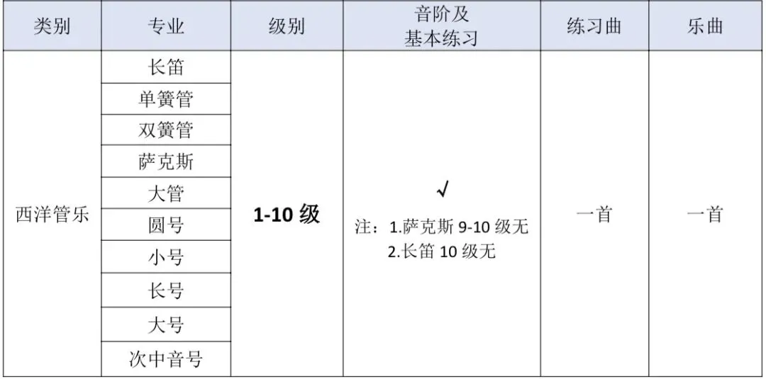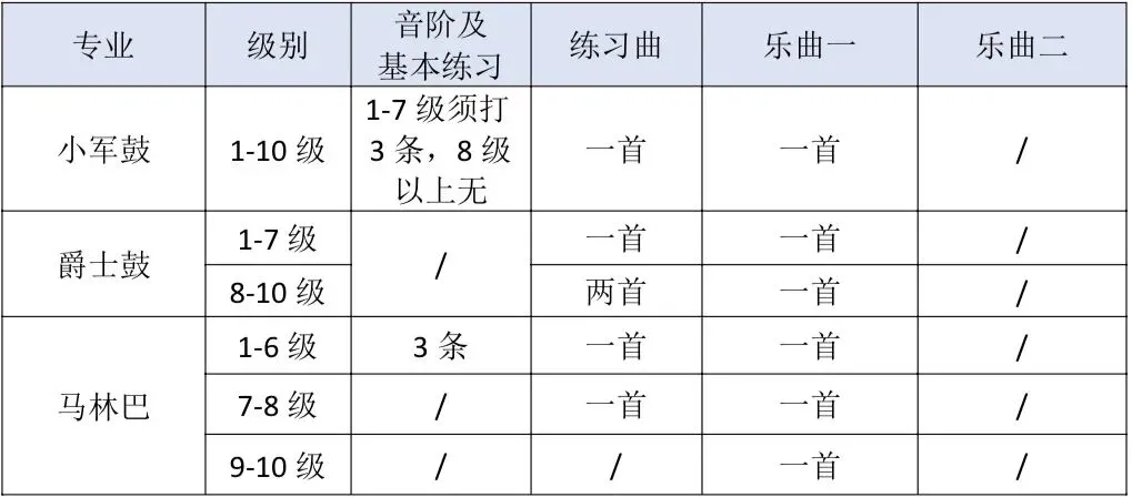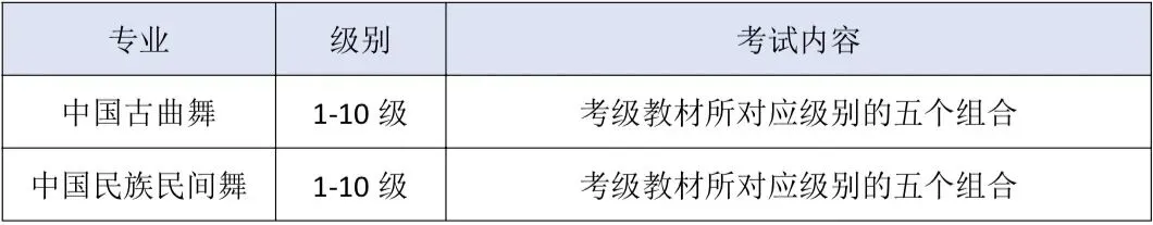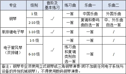 ※ 以上考级内容选择须对应报考级别,不得缺项。