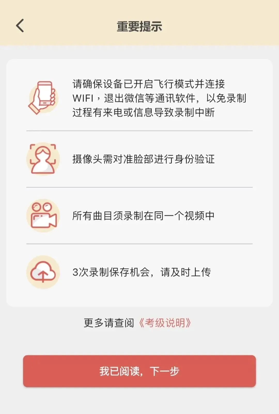 10.录制需使用手机自带麦克风,不要插入耳机,考生可在正式考级录制前进行测试,使用回放功能进行试听,必要时可更换手机,确保音质良好、画面清晰。