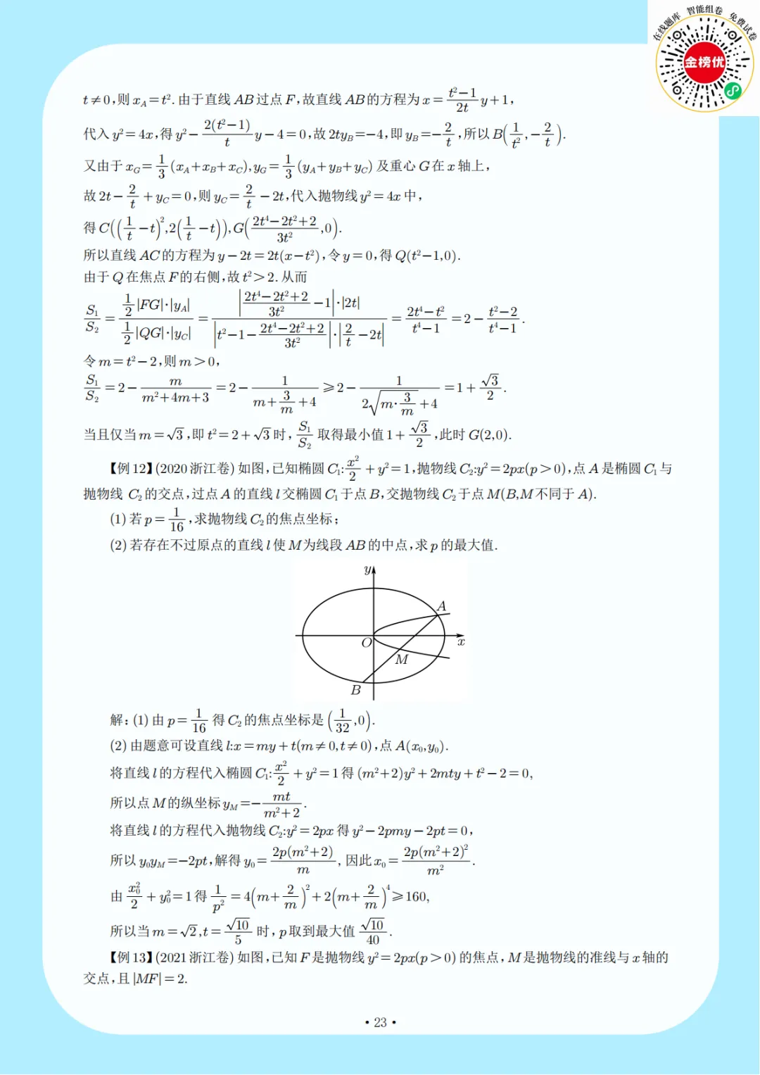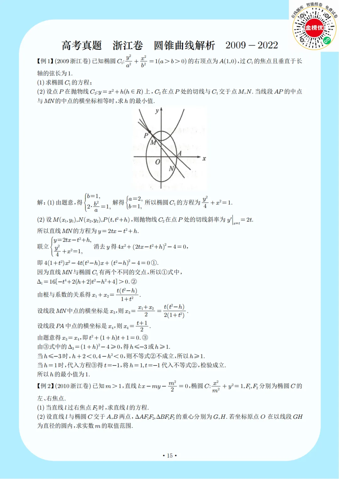 【精品word版】浙江卷圆锥曲线大题2009-2022