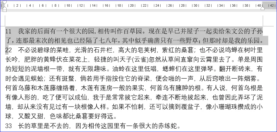 ‘在活动文档中的各段前面插入一个表示段落的数字