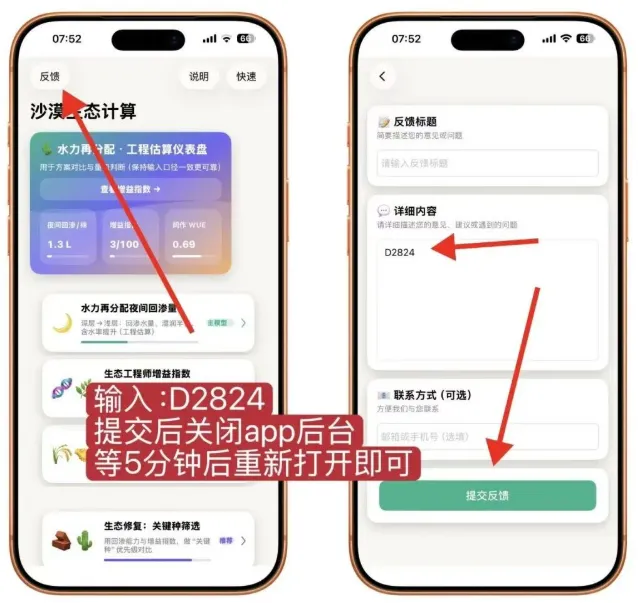 应用介绍:打开软件后,点击下方【意见反馈】,输入:D2856,点击【提交】后,重新打开软件即可!