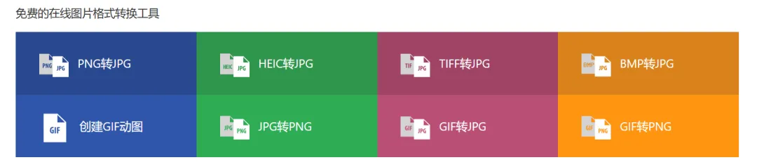 PNG转JPG、创建GIF动画、JPG转PNG、GIF转JPG、GIF转PNG、BMP转JPG、TIFF转JPG、HEIC转JPG