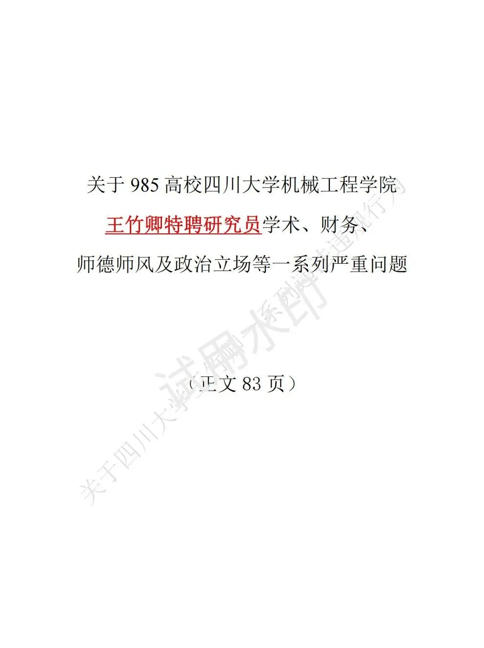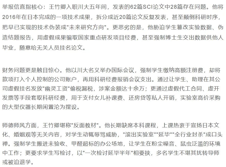 研究生83页PDF联合举报四川大学王竹卿师风师德等严重问题