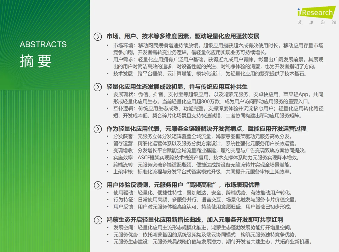手机APP太重了?鸿蒙元服务让你惊喜连连!艾瑞咨询:2025年移动应用服务新路径研究报告(附)