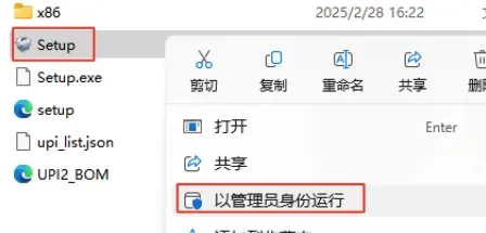 2.打开解压后的文件夹,选择【Setup.exe】鼠标右键选择【以管理员身份运行】。