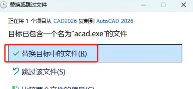 12.选择【替换目标中的文件】。