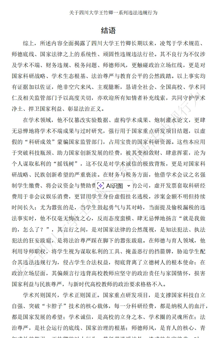 【吃瓜原文pdf】四川大学83页举报信pdf完整版王竹卿