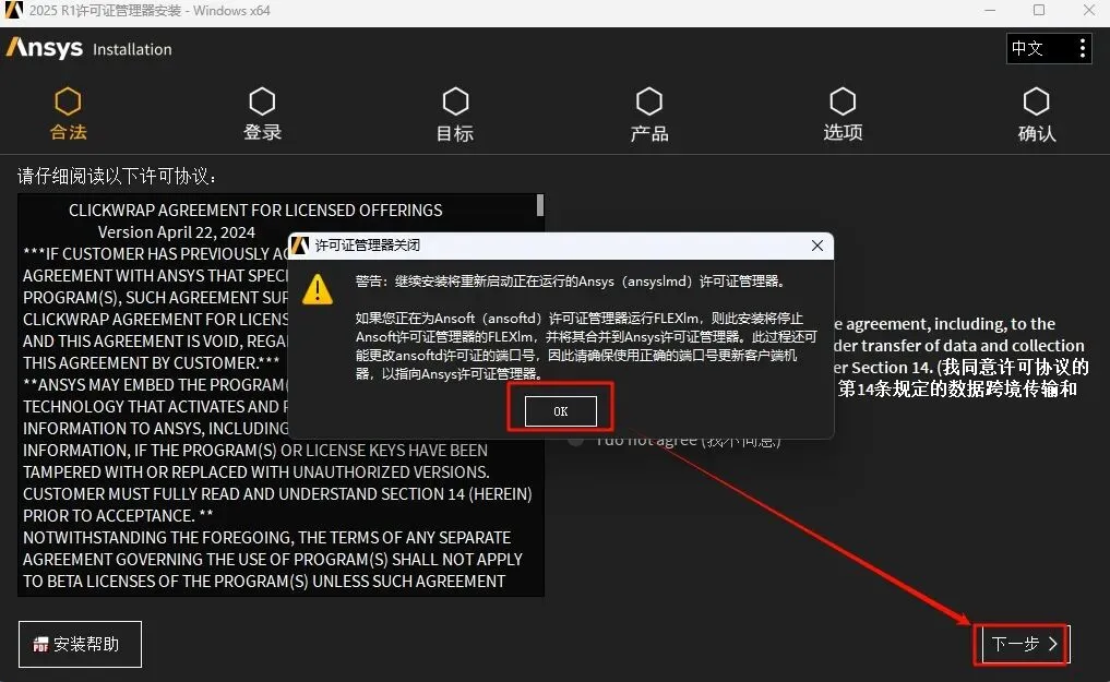 温馨提示:本教程分为两部分,分别为许可证管理器安装、ANSYS及Electronics、Lumerical、Zemax软件安装。如果已安装ANSYS License Manager 2024R1\R2许可证管理器的用户请直接从第23步开始进行安装