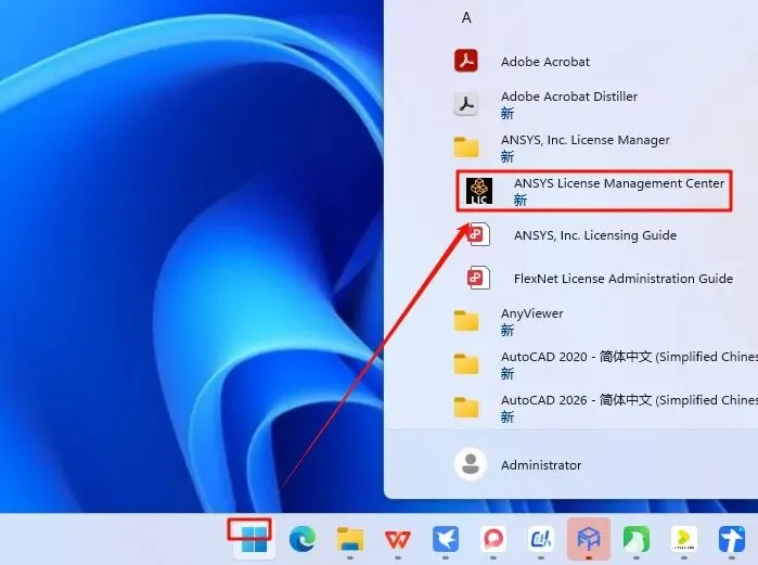 15.点击“开始“菜单栏,找到证书管理中心“ANSYS License Manager Center“,点击打开