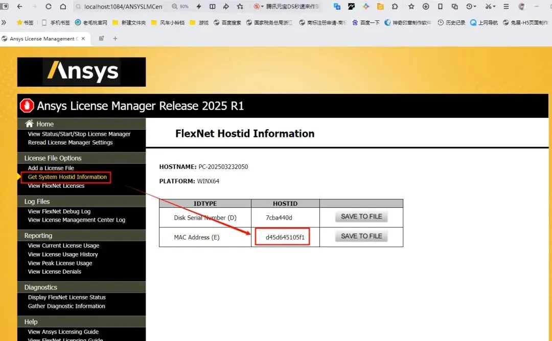 16.打开之后,点击“Get System Hostid Information”,复制第二项的HOSTID(MAC Address)
