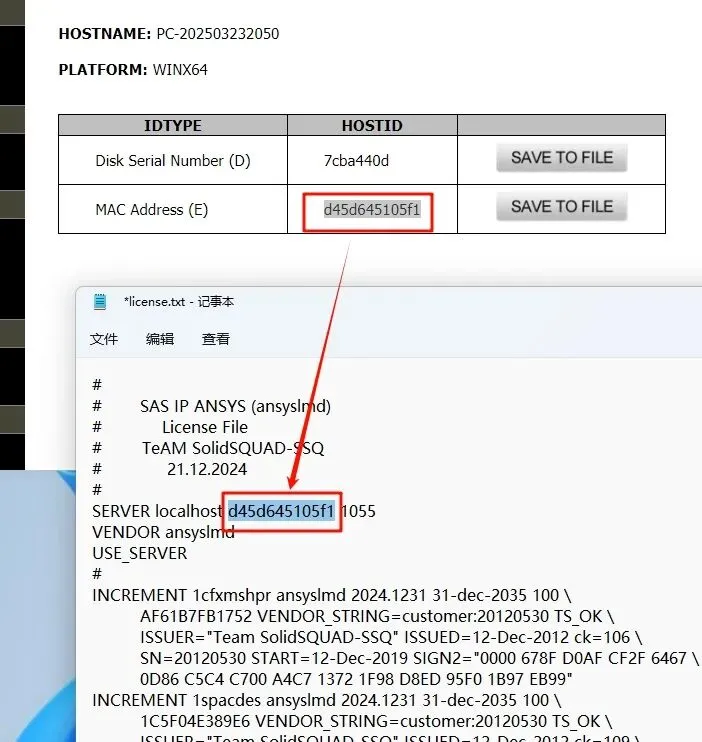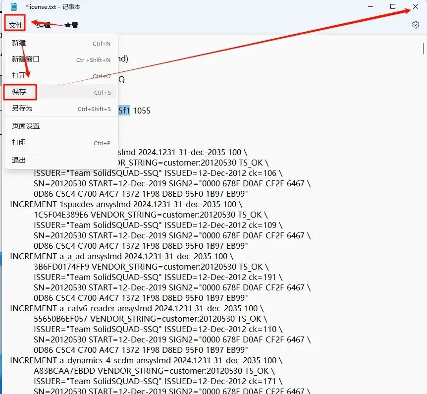 17.返回之前解压的“ANSYS Products 2025 R1”文件夹,双击打开“Crack”文件夹,打开“license.txt”文本文件,在文本中找到“XXXXXXXXXXXX”