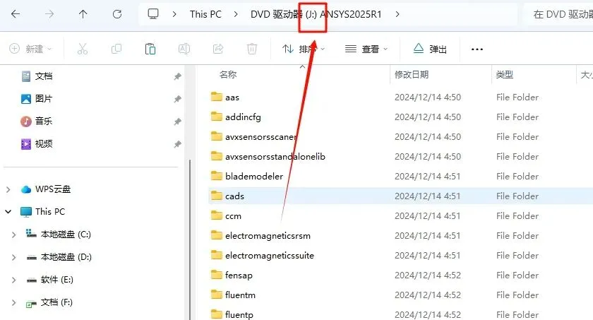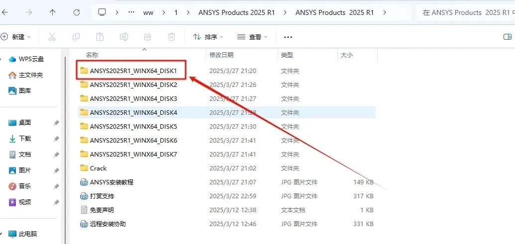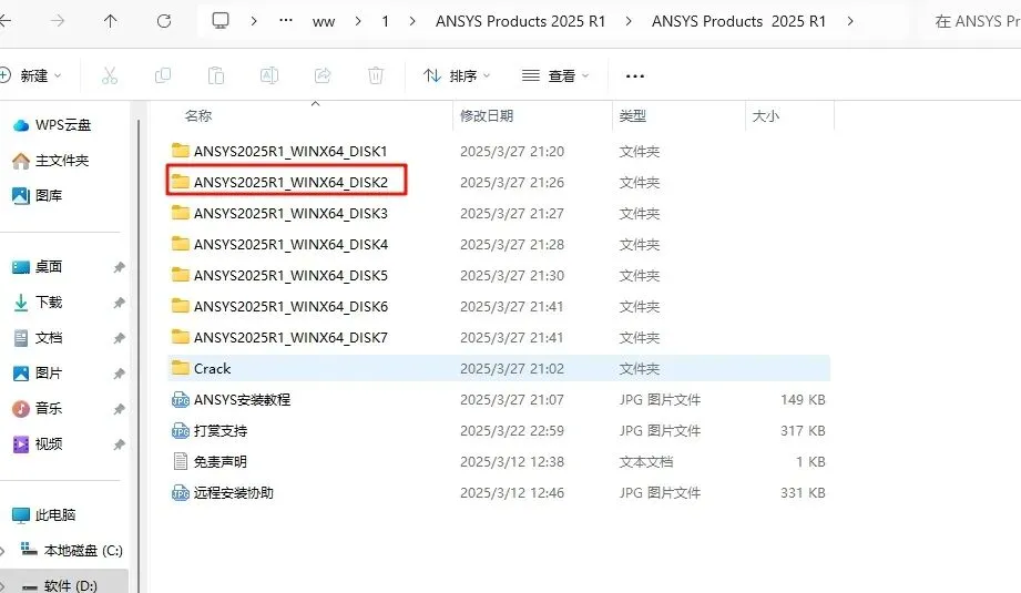 37.返回之前解压的“ANSYS Products 2025 R1”文件夹,找到“ANSYS2025R1_WINX64_DISK2”文件,”