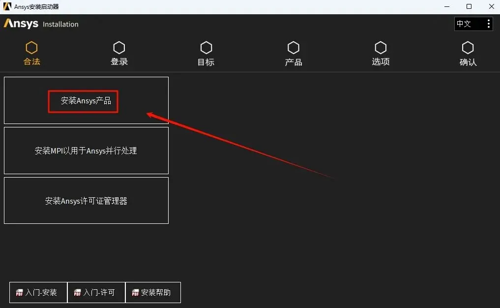 25.点击“安装ANSYS产品”