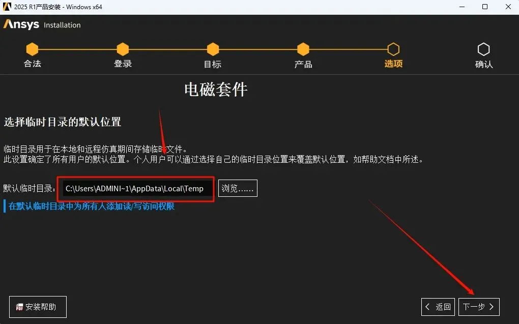 31.临时目录根据需要选择存放位置,点击“下一步”