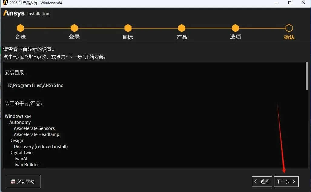 35.确认安装信息,点击“下一个”