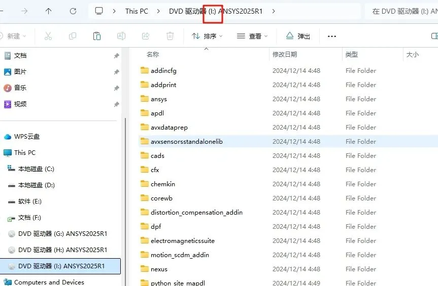 38.进入文件夹,在路径处查看盘符,下图为ANSYS Products 2025 R1目录下