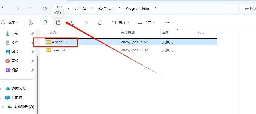 58.依次打开ANSYS安装路径:D:\Program Files(参看第27步),在打开的文件夹空白处,鼠标右键“粘贴”刚才复制的文件