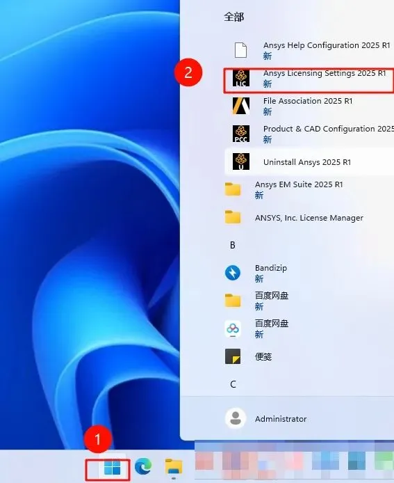 63.点击“开始“菜单栏,点击展开“Ansys 2025 R1“,点击打开“Ansys Licensing Settings 2025 R1“
