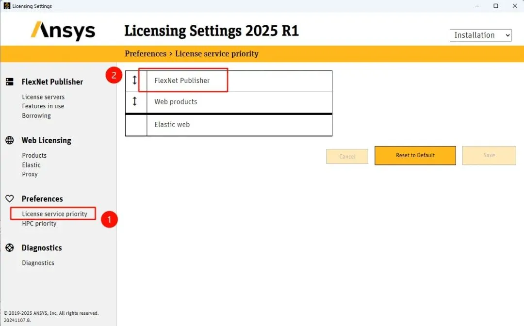 65.打开“License service priority”,确保“FlexNet Publisher”在最上边第一个