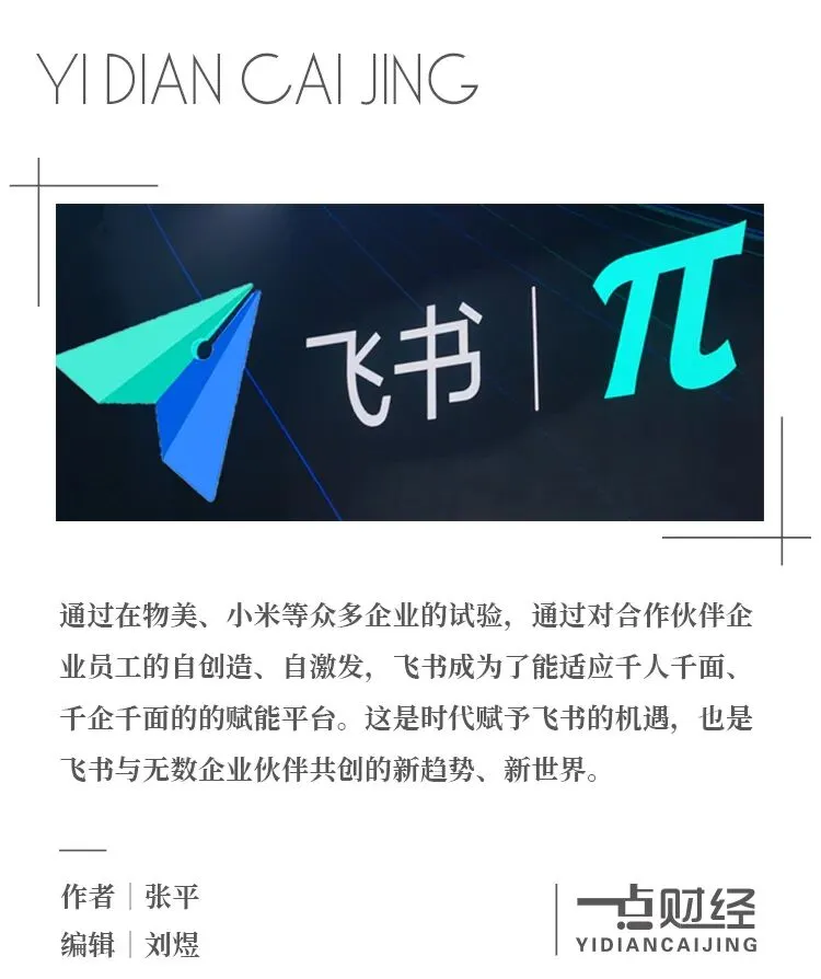 通过在物美、小米等众多企业的试验,通过对合作伙伴企业员工的自创造、自激发,飞书成为了能适应千人千面、千企千面的的赋能平台。这是时代赋予飞书的机遇,也是飞书与无数企业伙伴共创的新趋势、新世界;这是飞书的使命,也是新一代飞书又一次面向未来的革命。