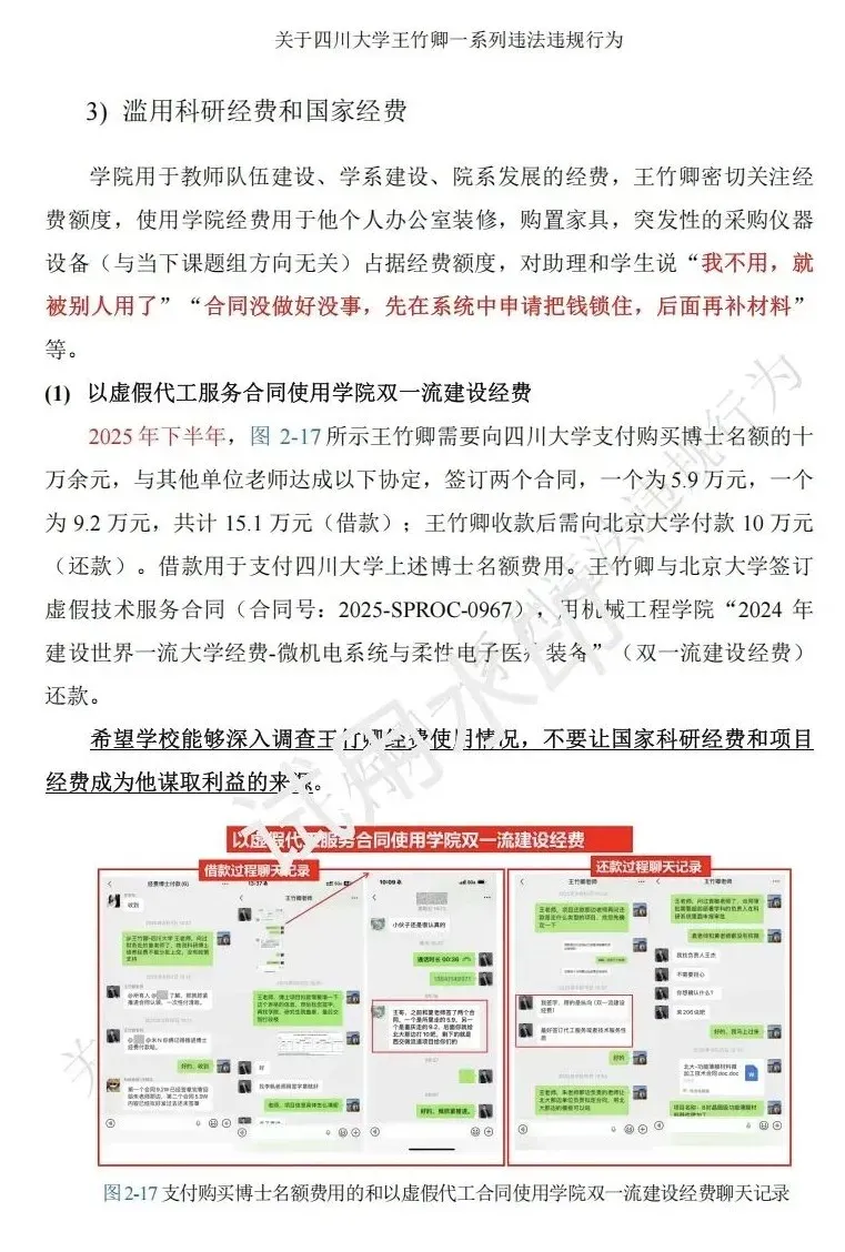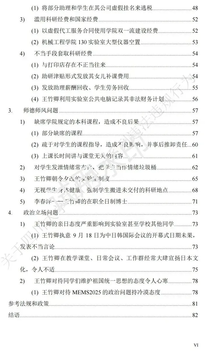 近日,四川大学某课题组多名在读硕博研究生联合举报其教师王竹卿,并制作了长达83页的PDF材料作为依据,举报材料在网络热传,指控内容涉及学术不端、侵占经费、师德失范等。