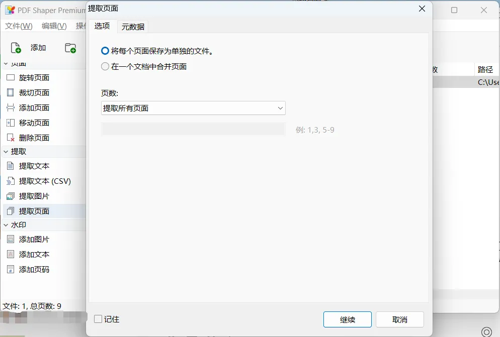 总的来看,软件的功能可以分为五大类:转换、文档、安全、页面、提取、水印。