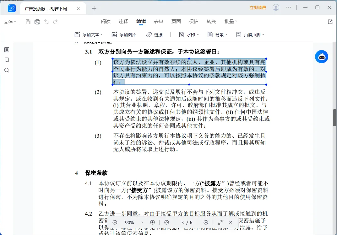 支持对 PDF 文件的文字以及图片进行编辑,还可以增加文本、图片、链接、水印、背景和页眉页脚。